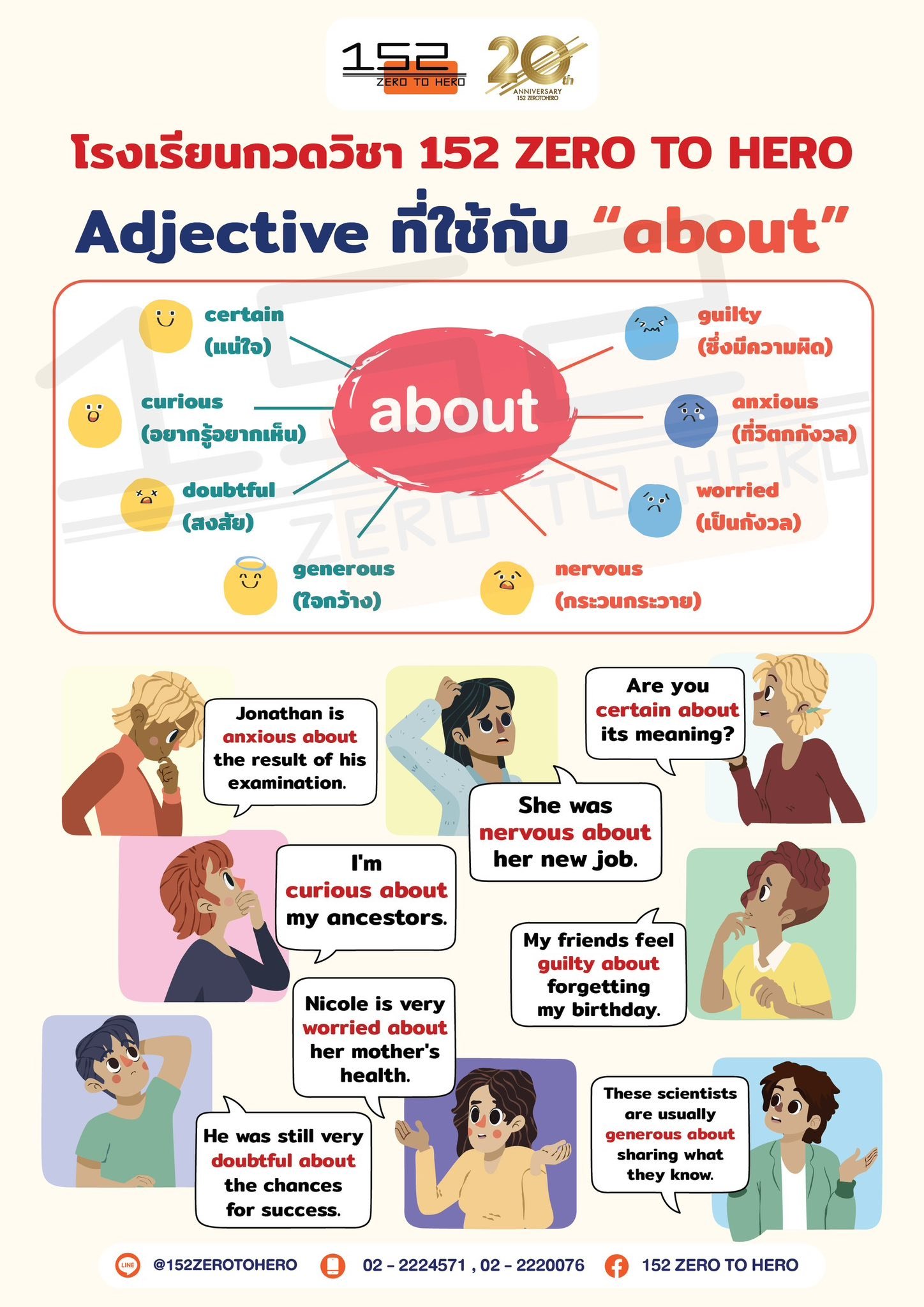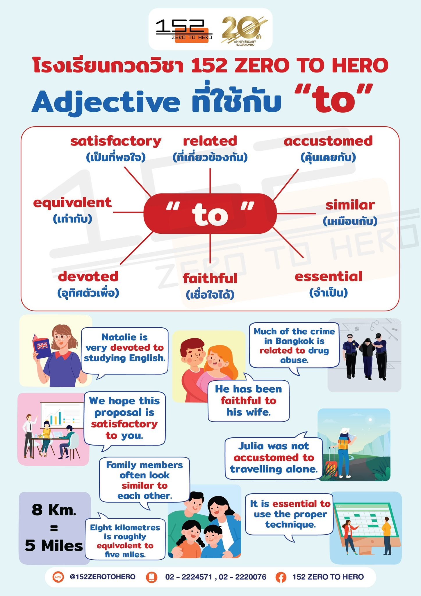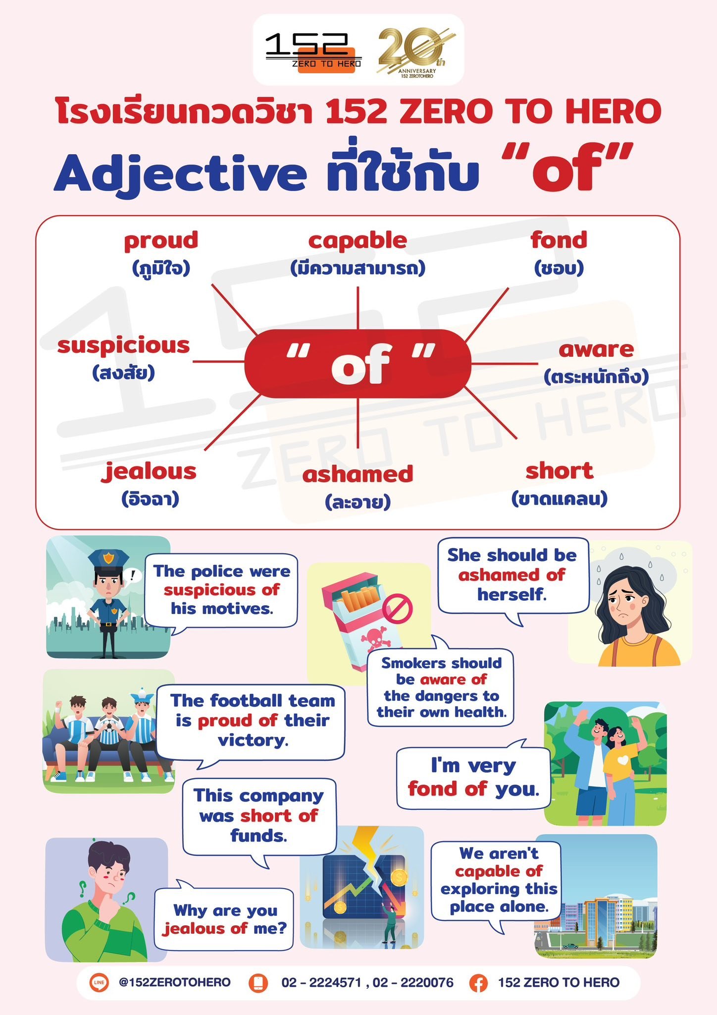 152 สรุปการใช้ Adjective ที่ตามด้วย Preposition >> to, for, with, about, of