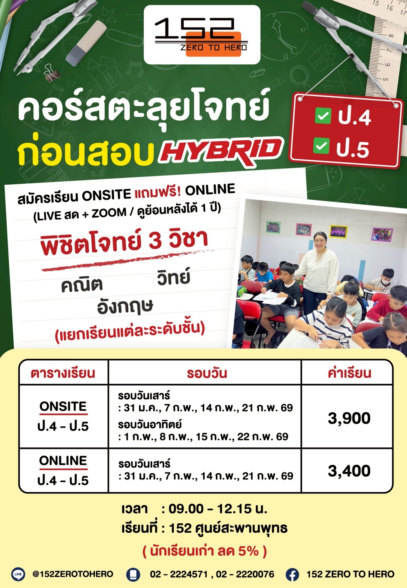กวดวิชา ป.3 - ป.6 เข้า ม.1 โรงเรียนรัฐบาลที่มีชื่อเสียง